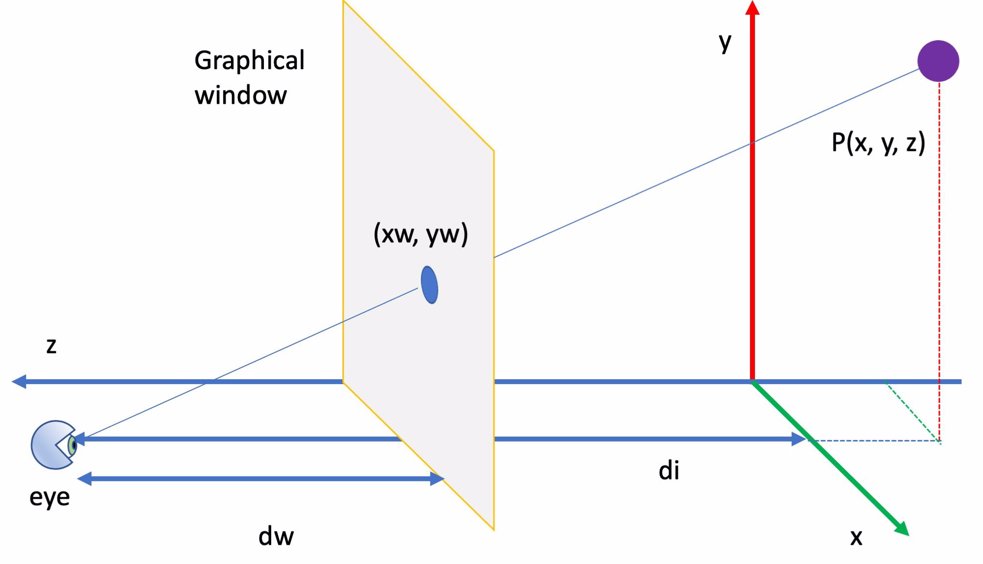 la distanza del piano di proiezione (finestra di visualizzazione) e