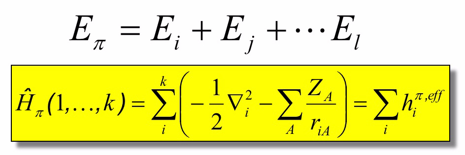 We can also assume that the molecular wave function of the whole system can be approximated as a product of 1-electron wave function orbitals