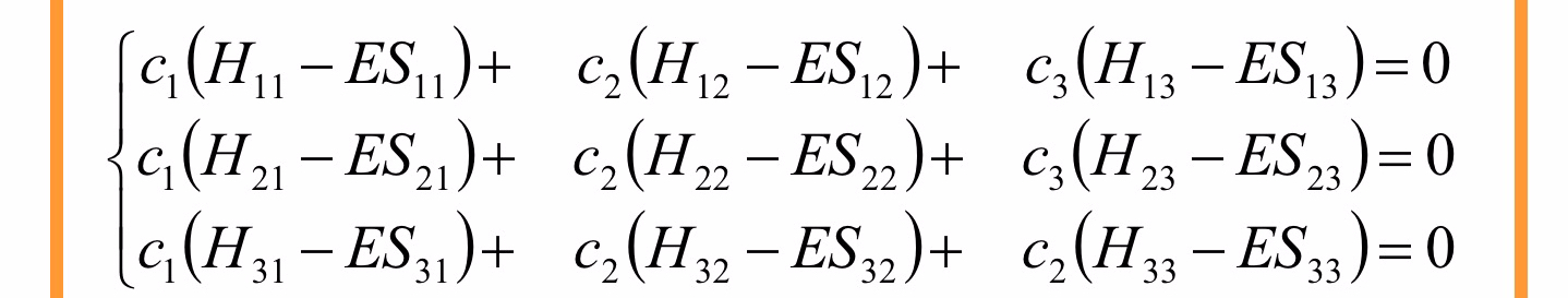 We therefore have a set of k simultaneous homogeneous equation (secular equations) in k unknowns. In the case of the allyl system the system is the follwing