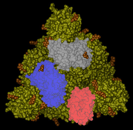 The NAG units looks quite uniformly distributed all around the S-protein trimer (see Figure 5).