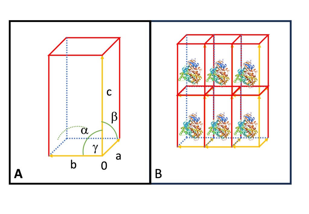 describe the angles between the lattice vectors. Together, these parameters fully specify the lattice system. In Figure 1A, you can observe the relationships between the lattice vectors. The angle $latx \alpha$ is formed between vectors