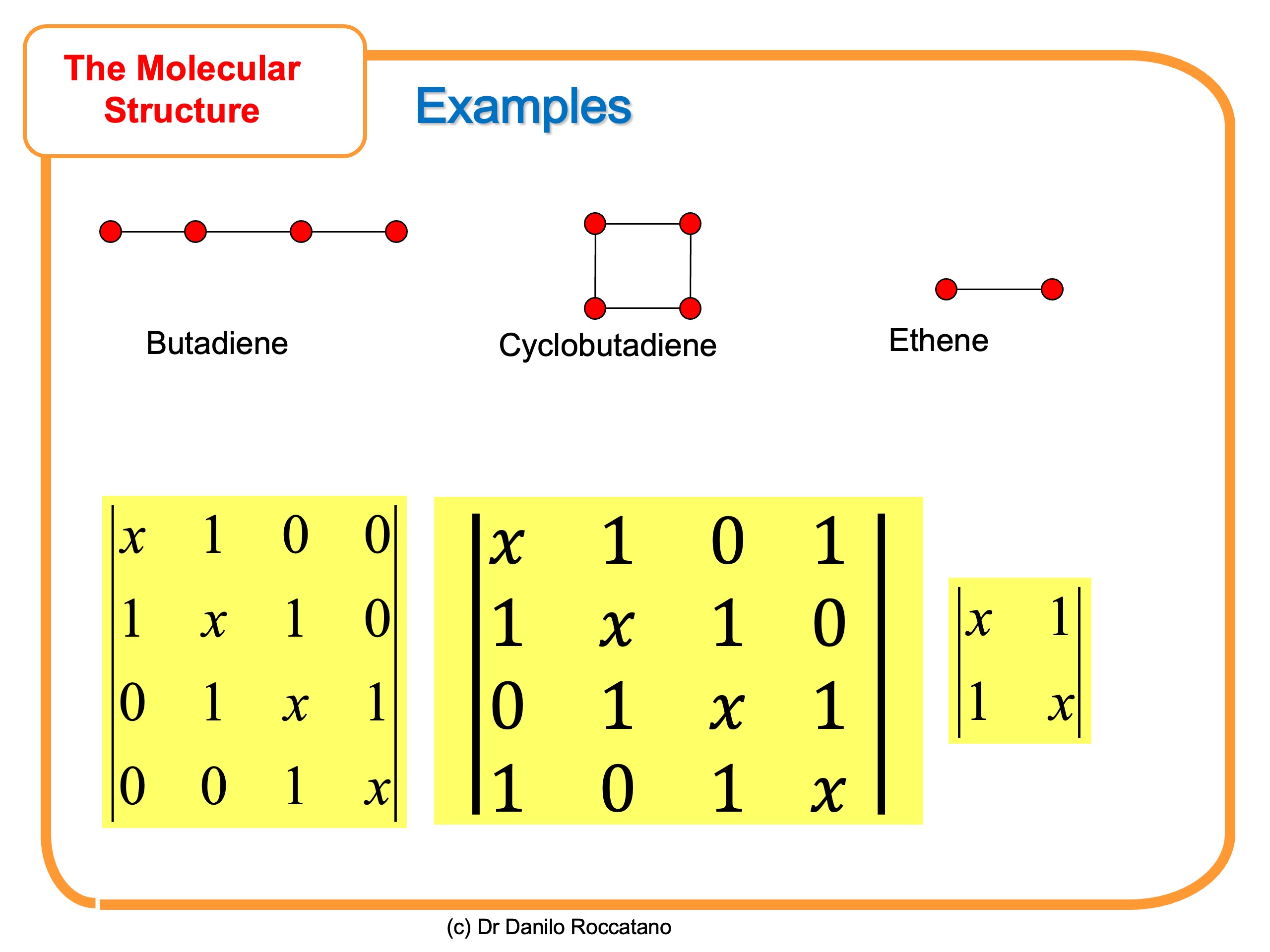 Pertanto possiamo impostare i valori dell’integrale nel determinante di Hückel come costanti e sulla base della connettività molecolare con valori