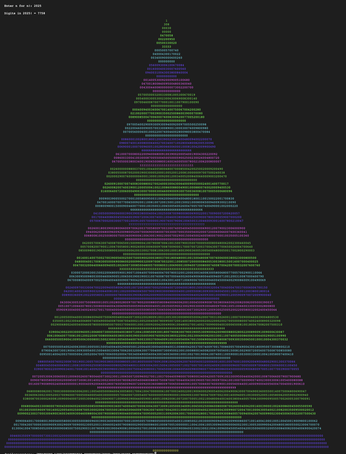 Once a large factorial has been computed, it naturally appears as a long string of digits. Normally, we print that string in a single line and move on. But this raises a playful question: