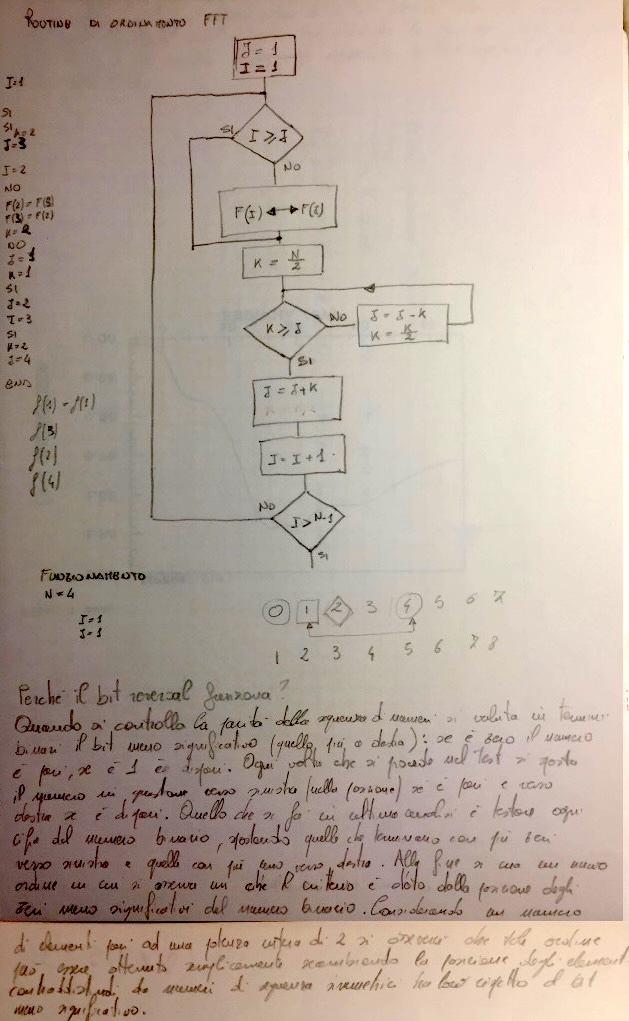The flowchart describes an algorithm for computing this permutation efficiently before the butterfly stages of the FFT.